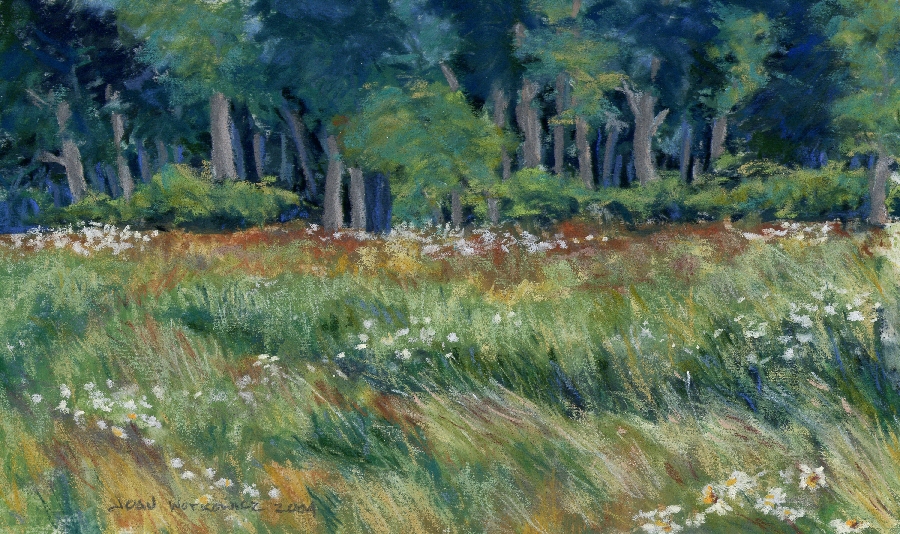 A plein air workshop exercise in a field of daisies.
